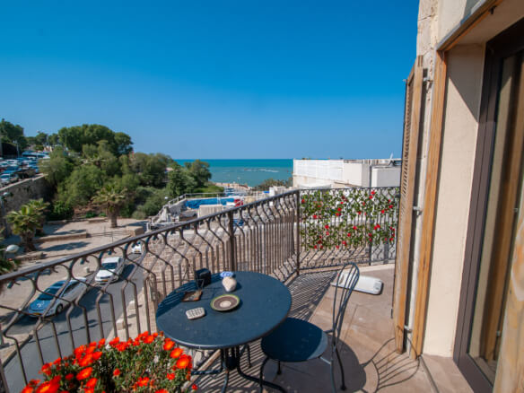 בצפון יפו דקת הליכה מהנמל ושוק הפשפשים שטופת אור, מרפסת צופה לים