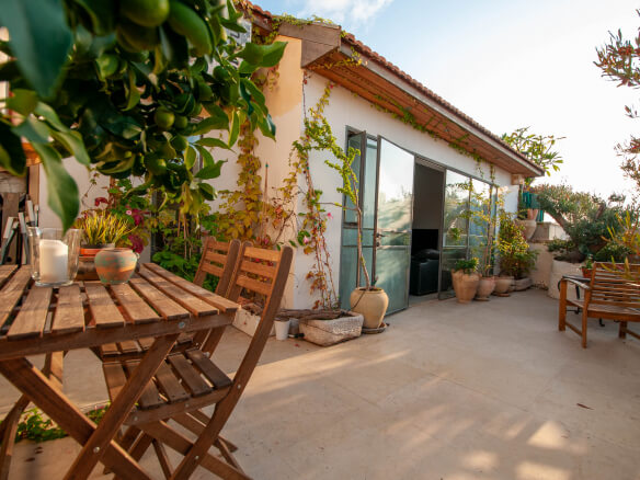 להשכרה בצפון יפו במיקום פסטורלי 120 מ”ר בית אותנטי תקרות גבוהות מעוצבת ומיוחדת